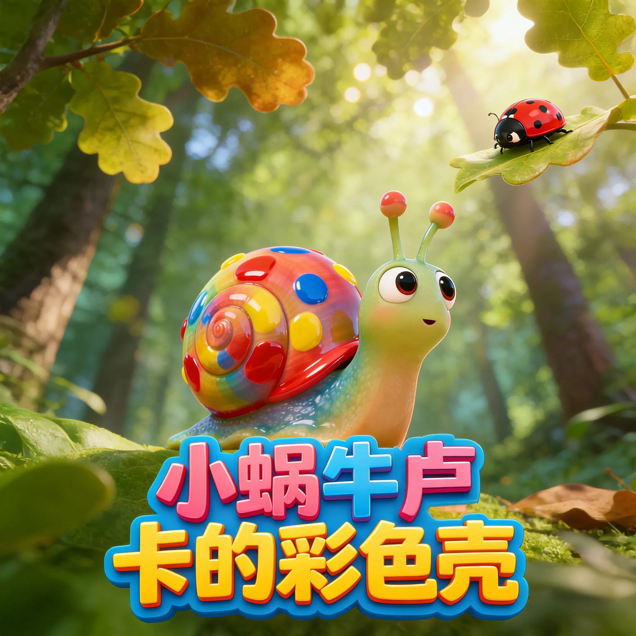 阳光透过橡树叶,洒在森林里。一年一度的蜗牛爬行比赛正在举行。所有的蜗牛都背着沉稳的棕褐色壳,只有卢卡的壳不一样——上面缀满了彩虹般的斑点,红的像野果,蓝的像溪流,黄的像蒲公英。卢卡缩着脖子,慢慢地爬在队伍最后。突然,他听见小松鼠奇奇在树枝上喊:‘快看那只彩虹怪!肯定爬不快!’卢卡猛地缩进壳里,彩色斑点在阳光下闪闪发亮,可他却觉得这些斑点像是大家嘲笑的焦点,心里难过极了。