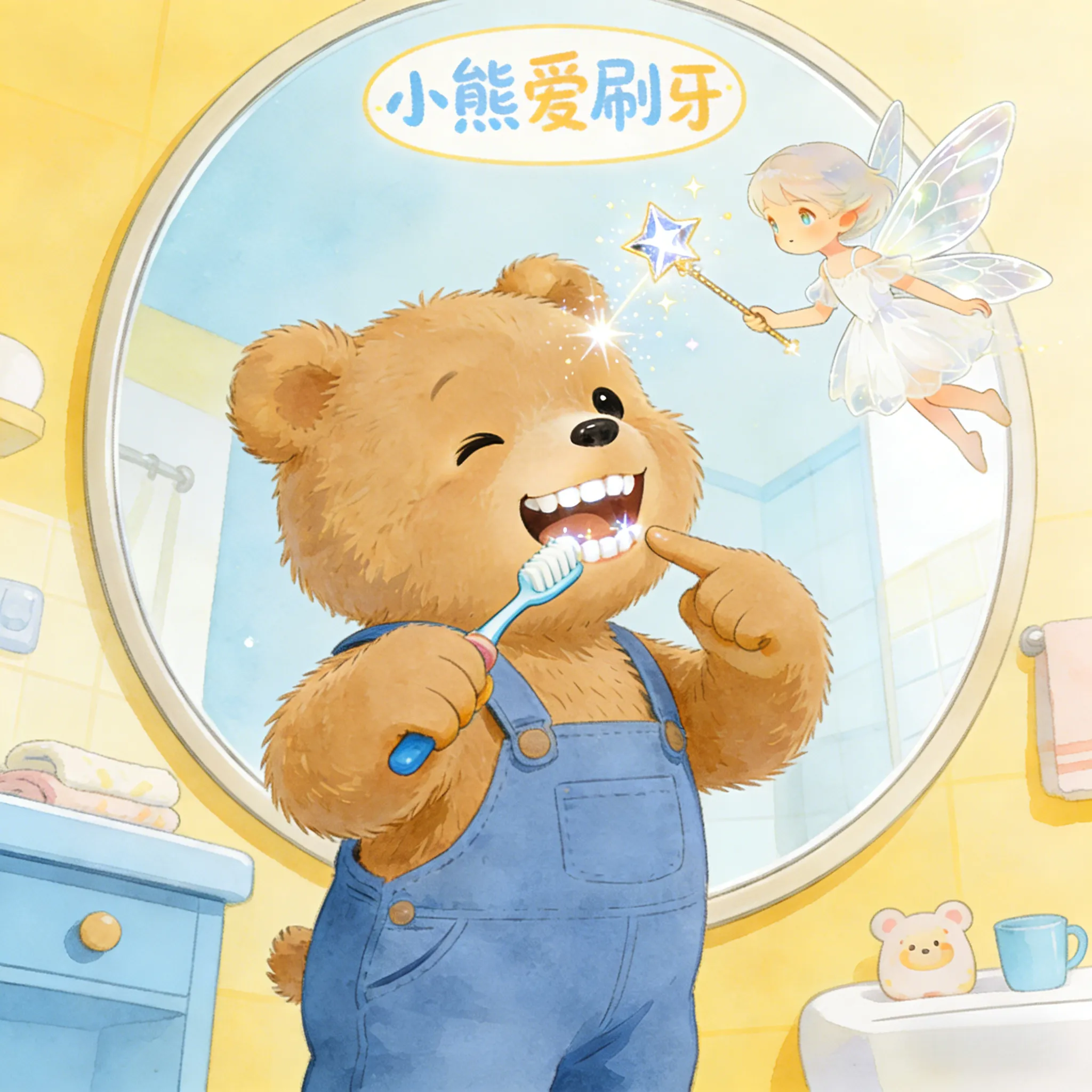小熊嘟嘟在牙齿小精灵的帮助下,打败了调皮的小细菌,学会了正确刷牙,从此拥有了亮晶晶的健康牙齿。